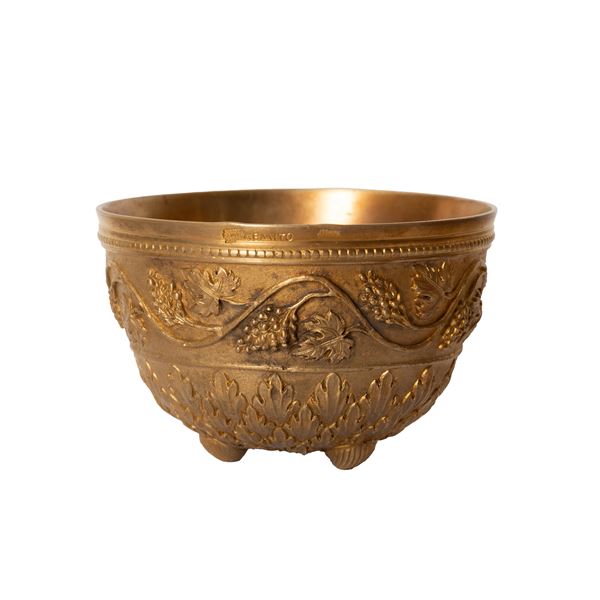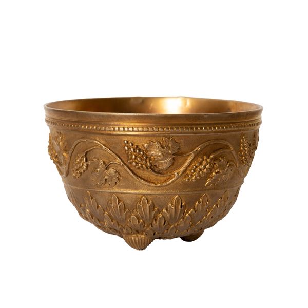 Coppetta ornamentale raffigurante tralci di vite, grappoli d’uva e foglie di quercia