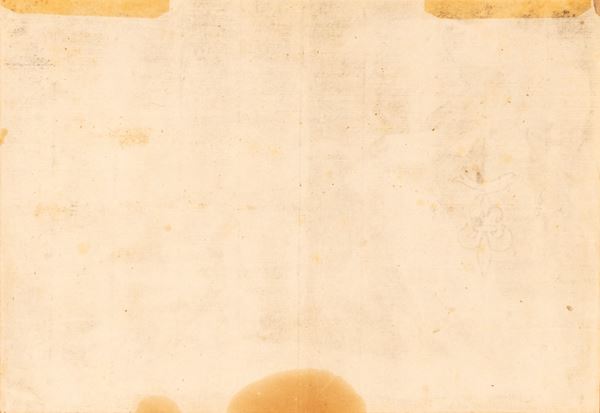 Condizioni: rifilata al rame, numeri in basso abrasi, gore nella parte inferiore, un numero ad inchiostro bruno al rovescio nella parte alta di sinistra, Piccola mancanza nella parte alta a sinistra della lastra