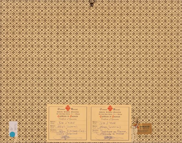 In cornice in radica di noce a più ordini di modanature e con filo oro