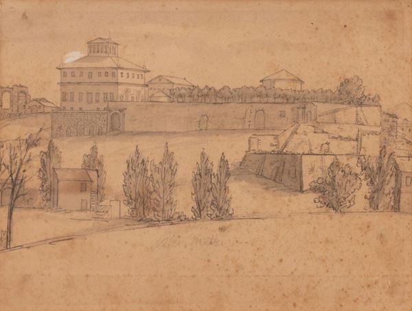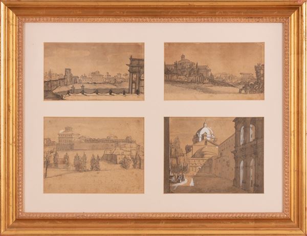 Lotto di 4 disegni raffiguranti vedute di Roma