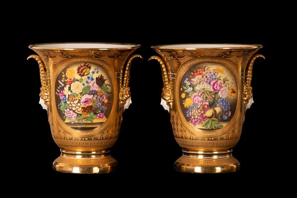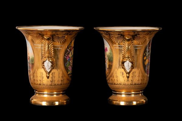 cm 26x22Al fronte riserve con ovale dipinto a scene mitologiche firmate G.P. ed al retro composizione di fiori su fondo nero