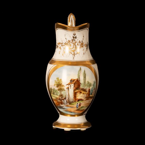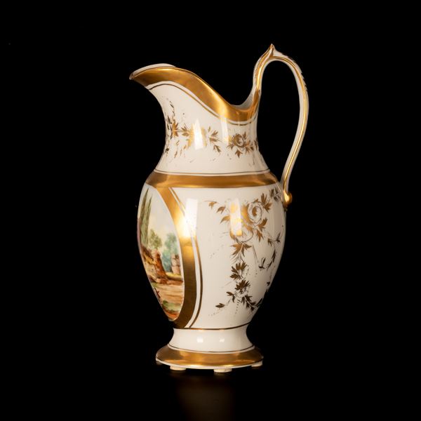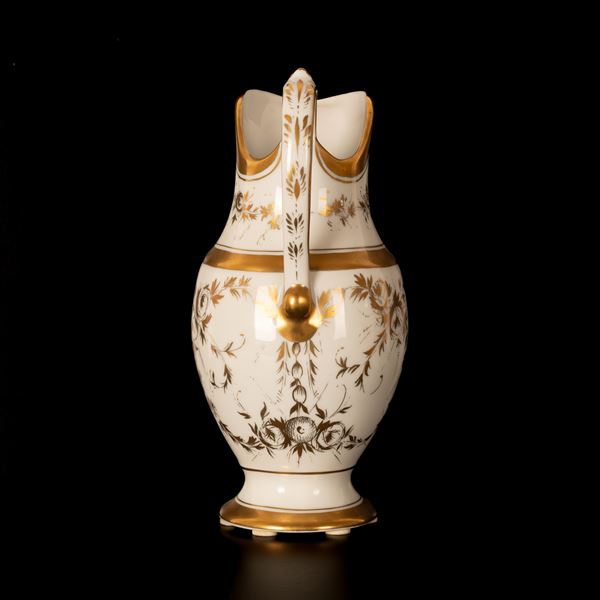 Brocca in porcella "Vecchia Parigi" con decoro in oro