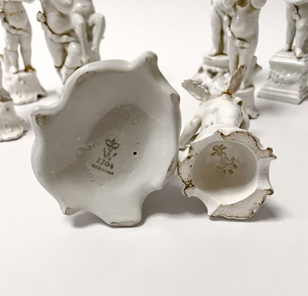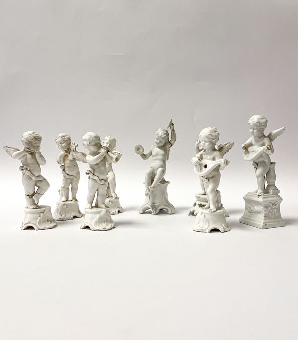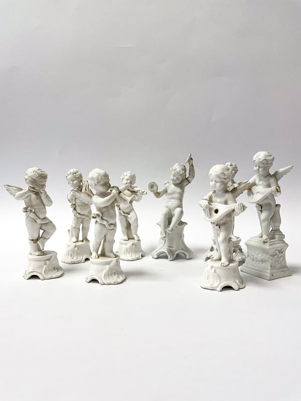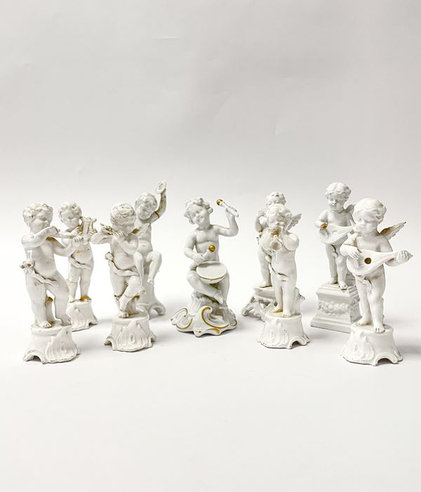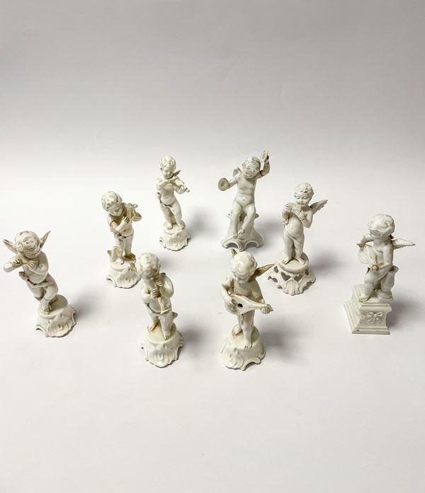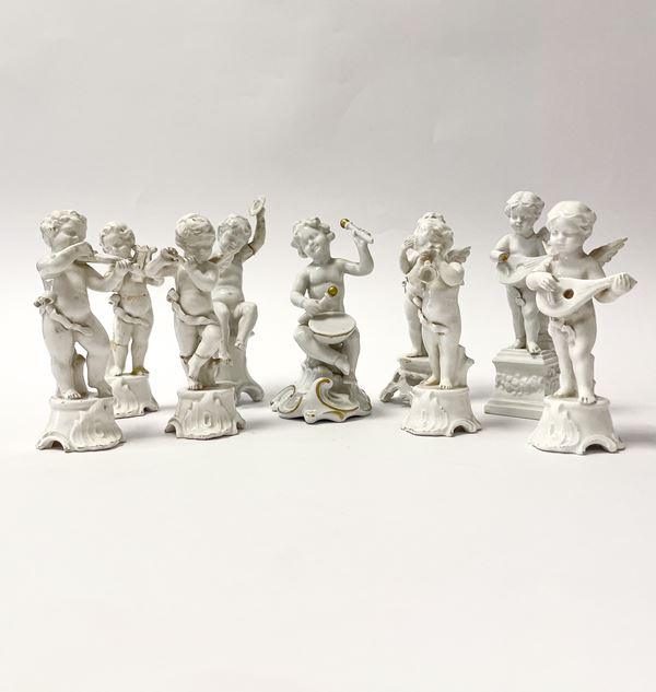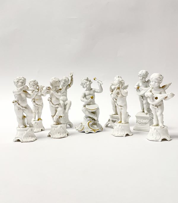 Nove statuine in ceramica di Capodimonte raffiguranti angeli musicanti