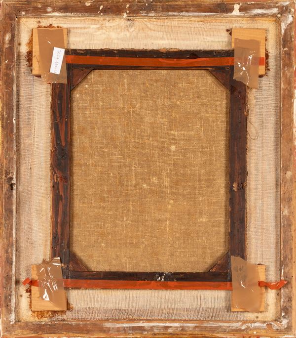 45x37 cm. cornice 64x56,4 cm. Cornice in gesso dorata con racemi, fiori e foglie d'acanto a rilievo