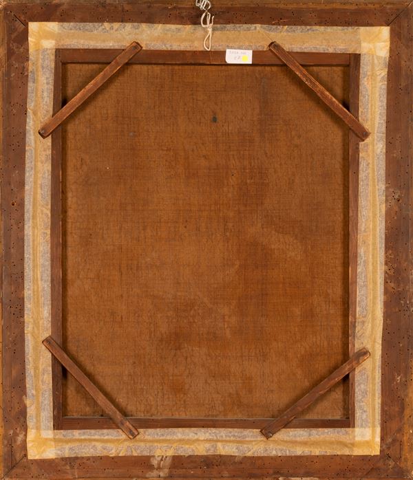 cm 63x51; con cornice cm 80,5x68,5Cornice a cassetta in legno dorato e intagliato con decoro fogliato a rilievo agli angoli della metà del XIX secolo.