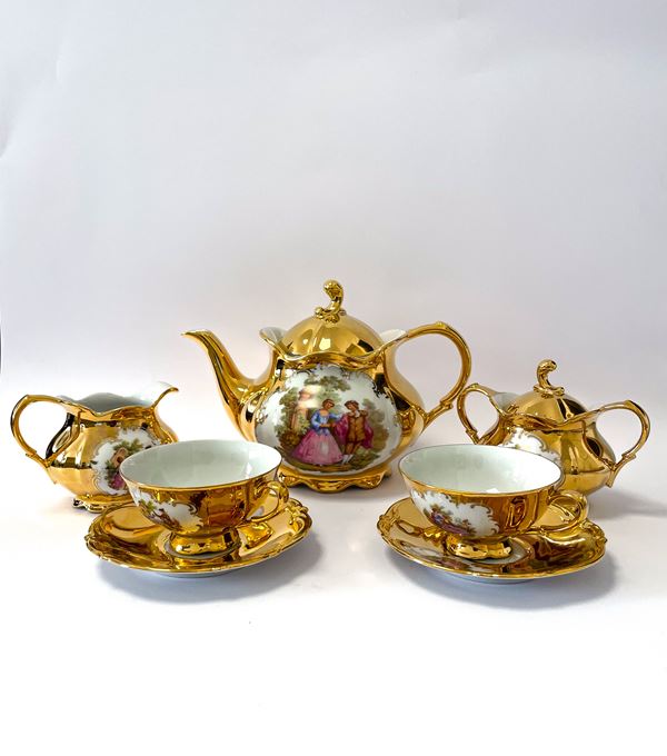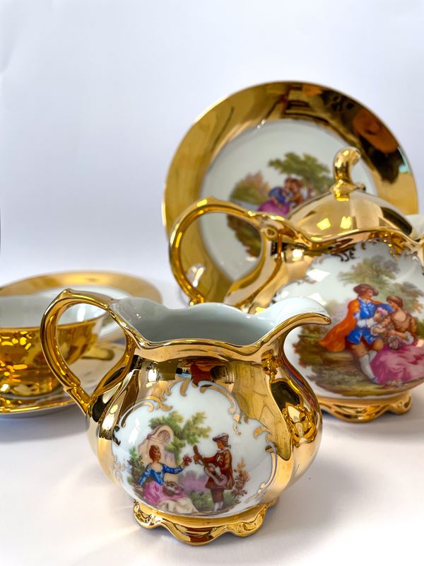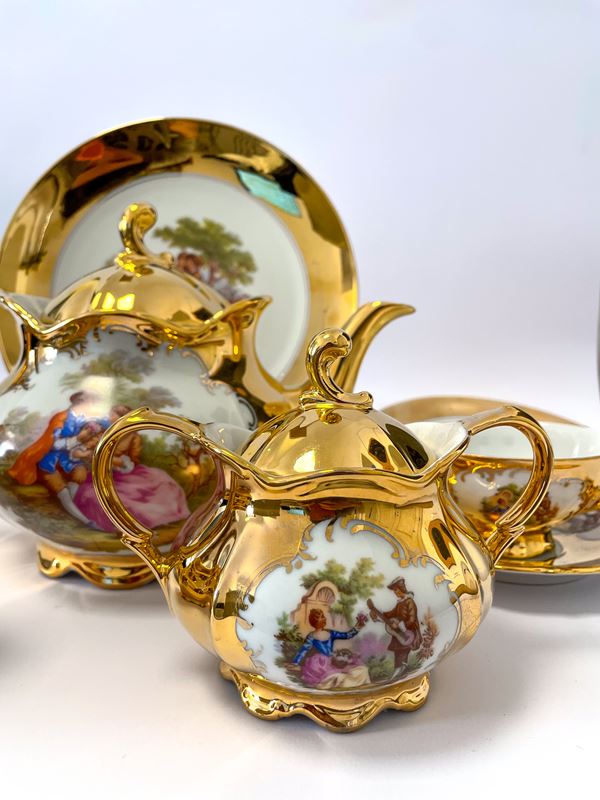 Servizio da tè Bavaria dipinte in oro con scene di corteggiamento ispirate alle composizioni di Jean-Honoré Fragonard