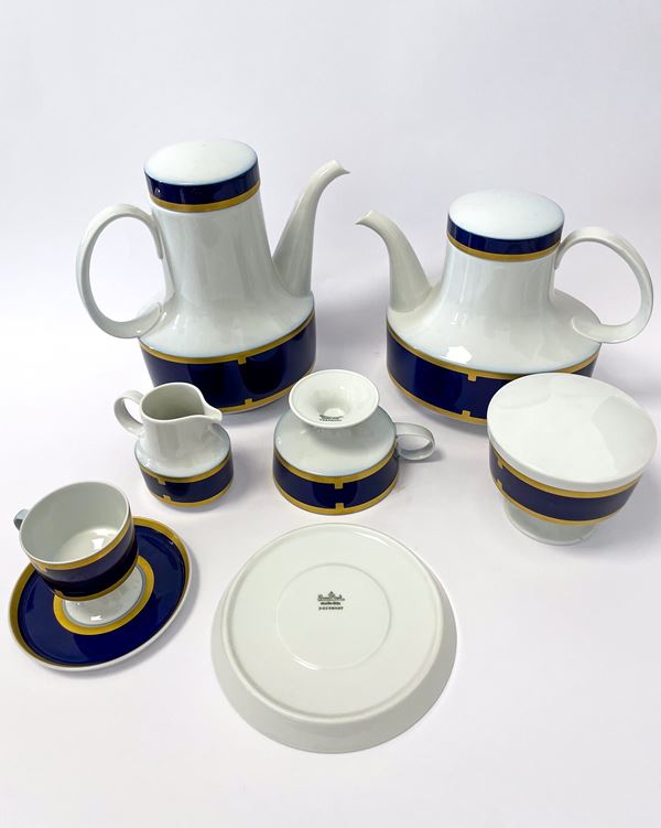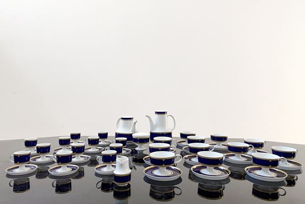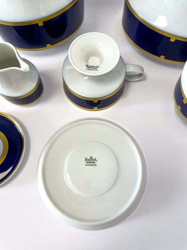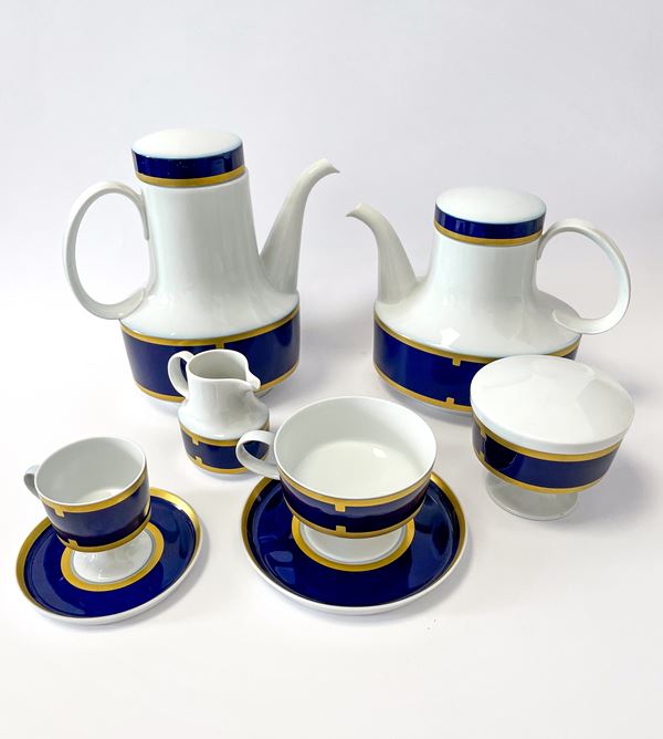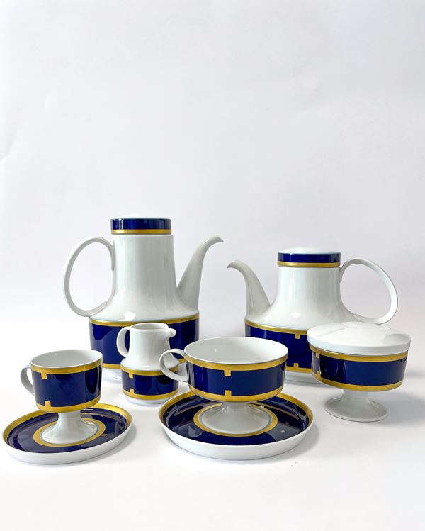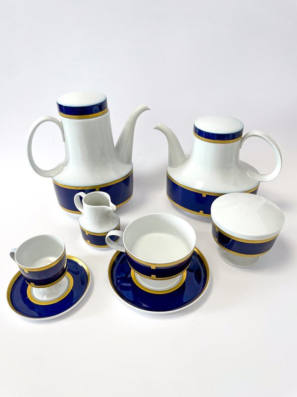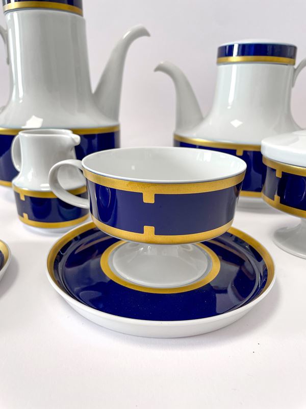 Servizio da the e caffè in porcellana Rosenthal bianca, blu e oro