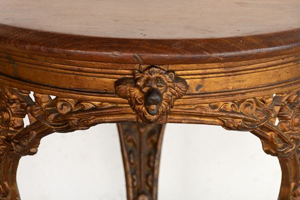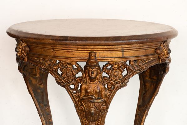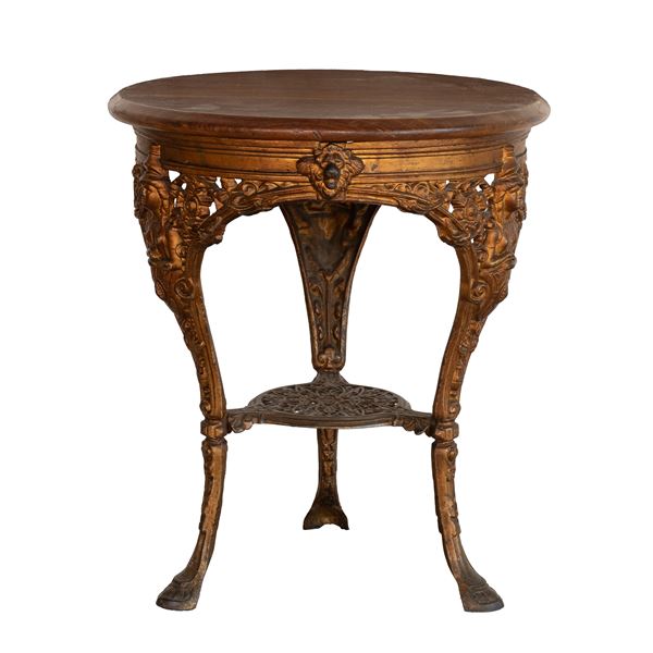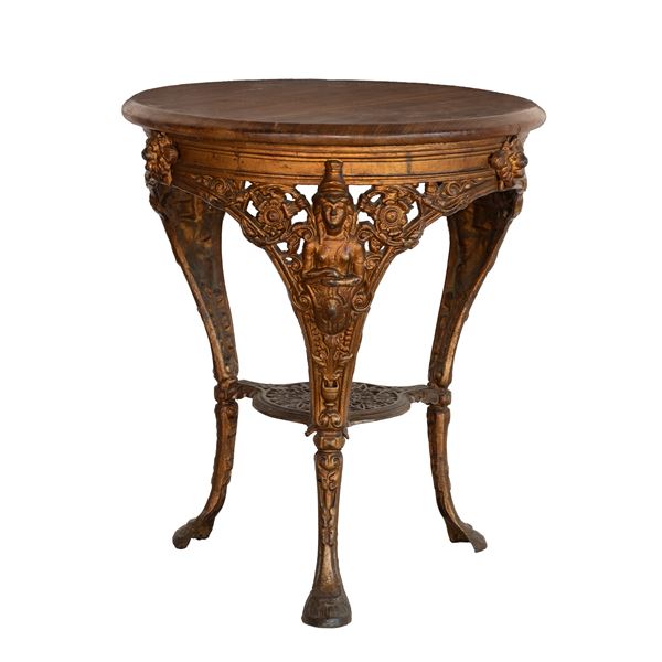 Tavolino in ghisa dorata con piano in legno. Inghilterra, fine del XIX secolo