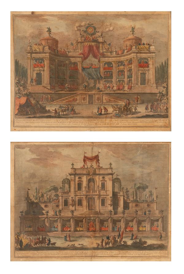 2) Disegno della Seconda Machina rappresentante i Giuochi Atletici. incendiata per comando di sua Eccellenza il Signor Don Lorenzo Colonna Gran Contestabile del Regno di Napoli come Ambasciatore straordinario di Sua Maestà il Re delle due Sicilie la sera delli XXIX Giugno Festa dei Gloriosi Apostoli Pietro e Paolo, in occasione di aver presentata la Chinea alla Santità di Nostro Signore papa Clemente XIII, l'Anno MDCCLXVI