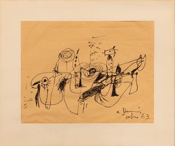 pennarello su carta velinaFirmato in basso a destra afro 63