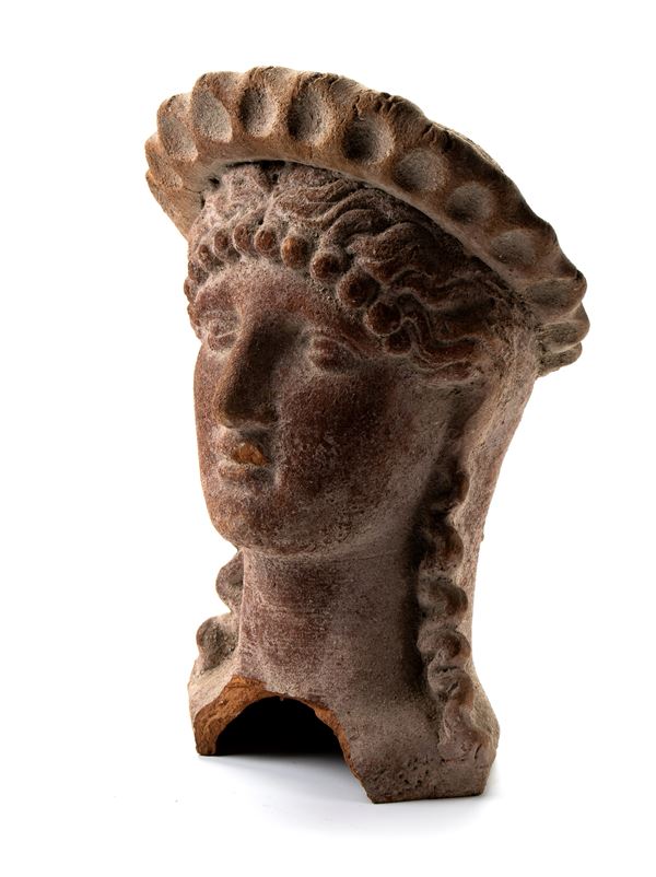 Antefissa in terracotta raffigurante testa femminile