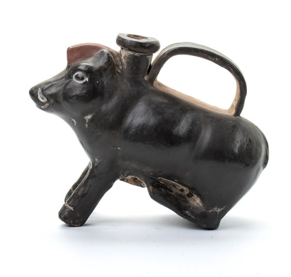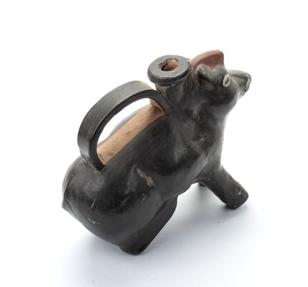 Askos in ceramica buccheroide modellato a guisa di cinghiale