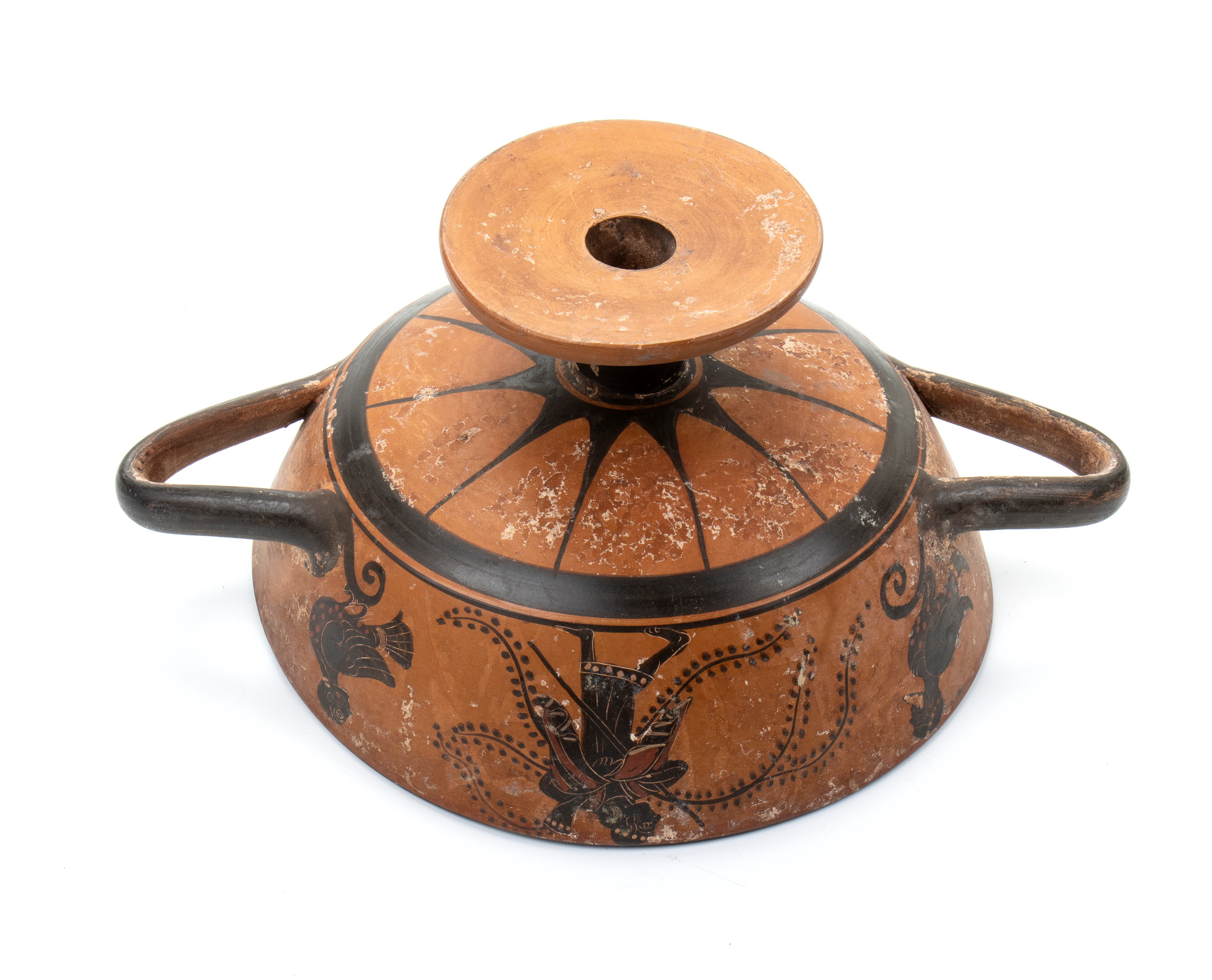 Coppa con manici in ceramic arcaica a figure nere con simposio