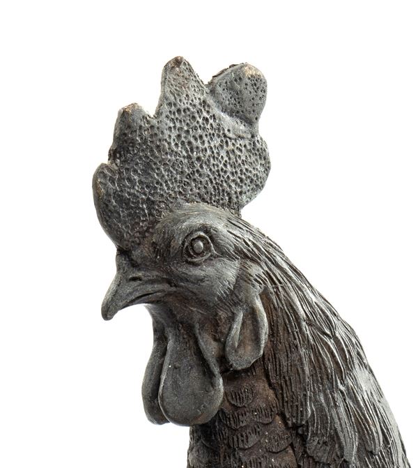 Coppia di gallo e gallina in bronzo