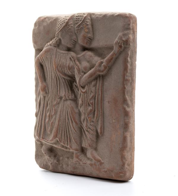 Formella in terracotta raffigurante una coppia di sposi etruschi