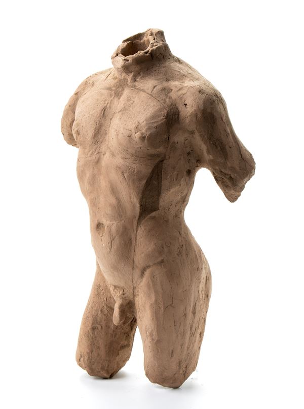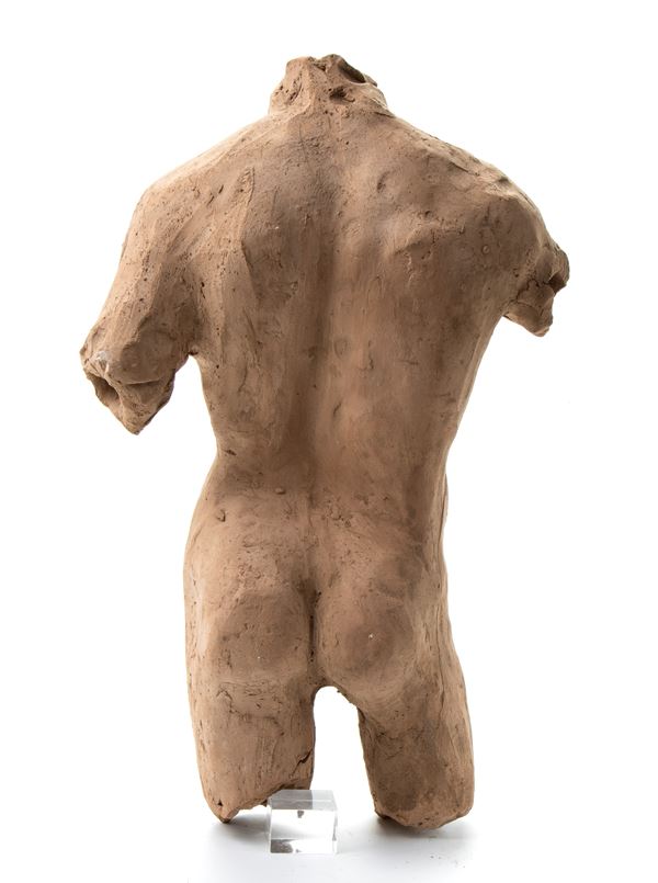 Torso in terracotta a rilievo senza bracccia, gambe e testa