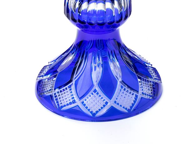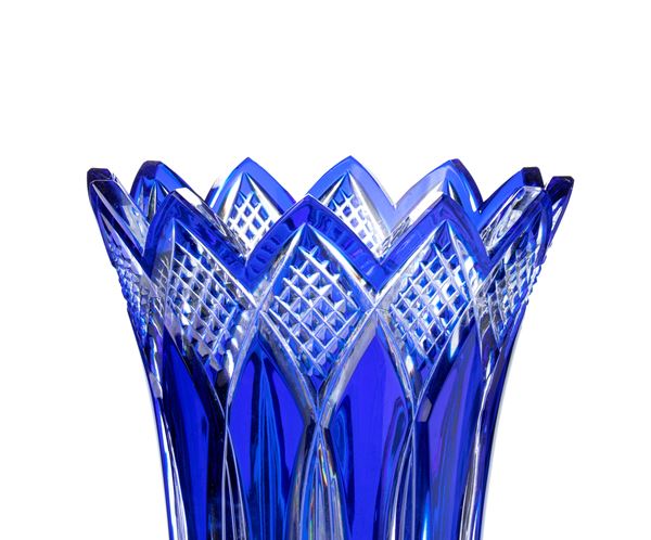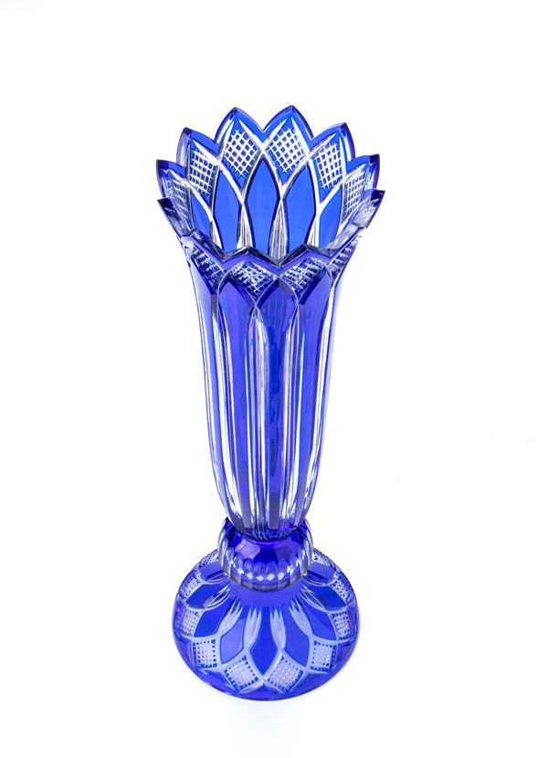 Vaso in cristallo molato nei toni del blu. Scanalature al fusto