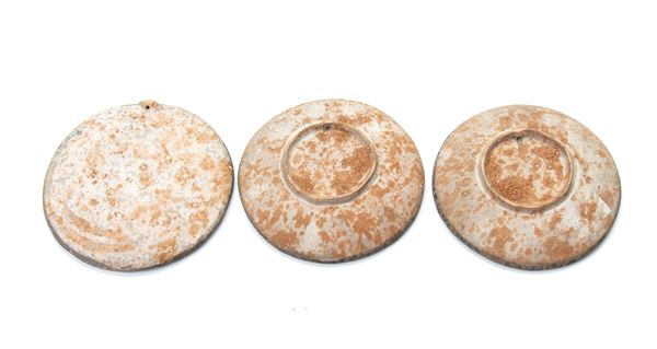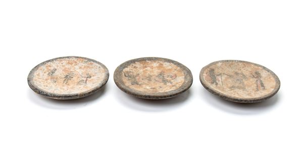 Lotto di 3 piattini in ceramica arcaica a figure nere con guerrieri
