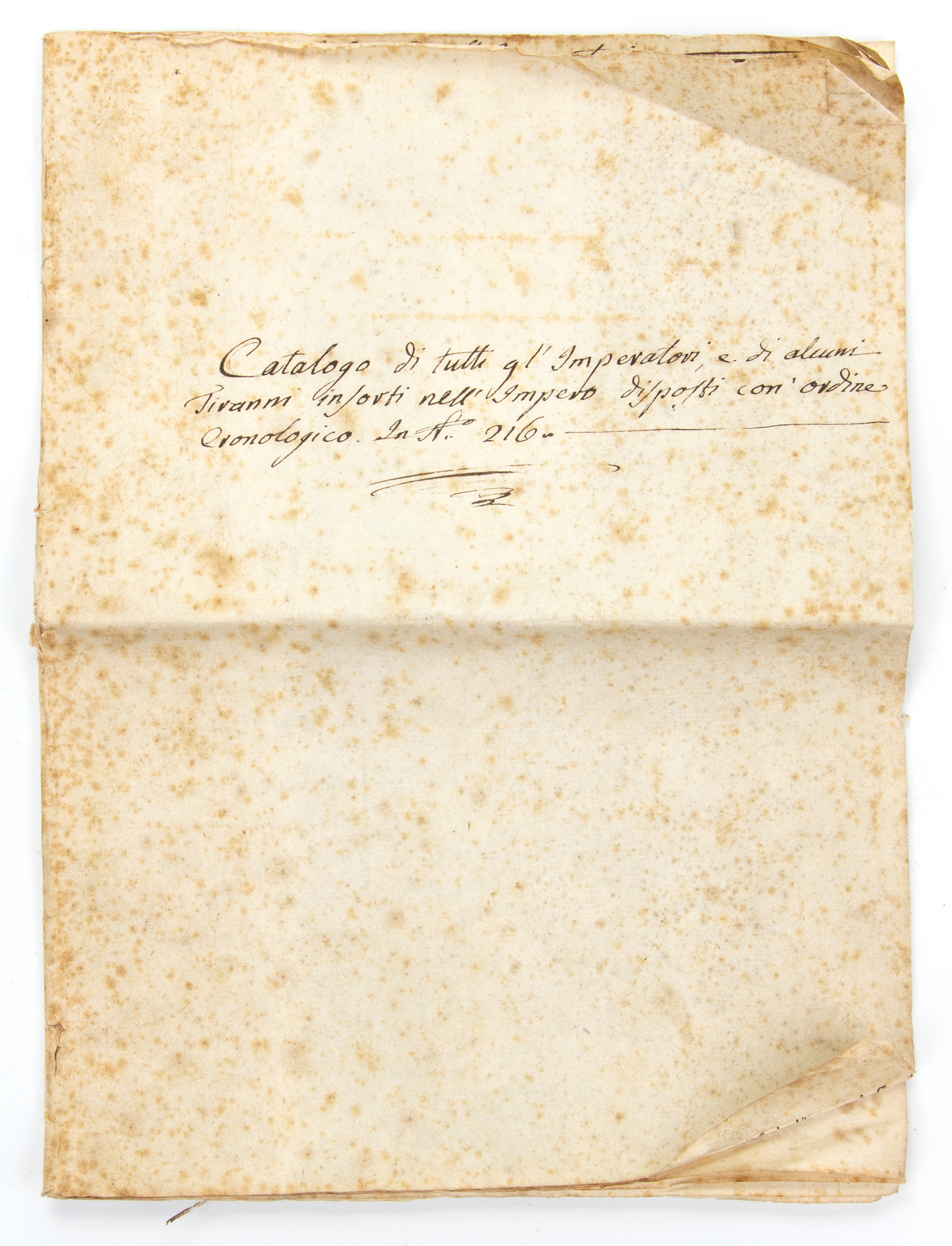 Manoscritto Catalogo di tutti gl'Imperatore e di alcuni tiranni inforti nell'Impero riposti con ordine cronologico