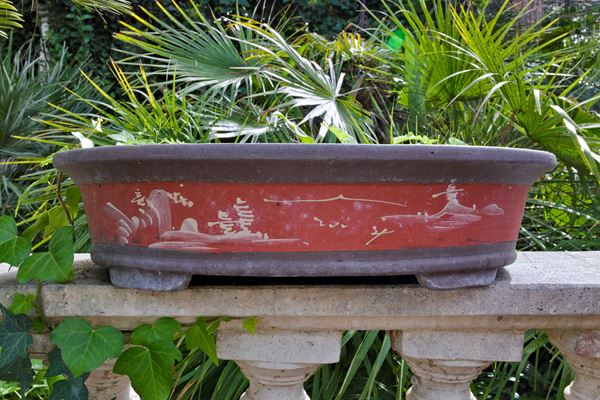 Vaso portabonsai in ghisa dipinta. Giappone, XX secolo