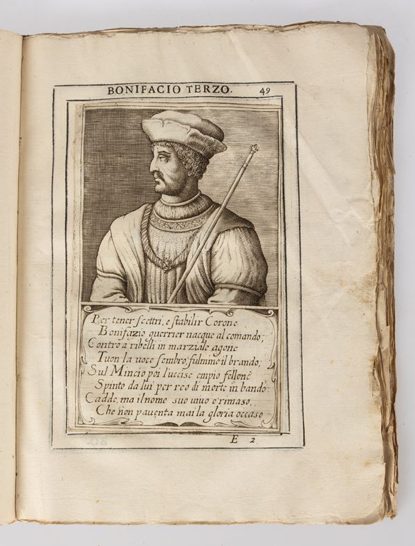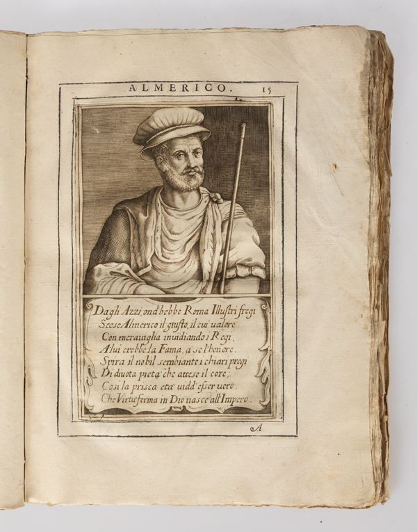 Volume formato 4°, rilegato in cartonato settecentesco, Ex-libris Cristoforo Scotti al contropiatto, frontespizio allegorico inciso in rame, pp. [8], 124, cinque ritratti incisi in rame, esemplare in discrete condizioni, antiche gore, legatura usurata.
