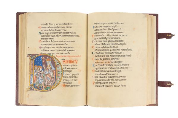 All’interno 42 miniature attribuite ad Alexis Master completano il testo composto da 150 salmi latini, la Vita di s. Alessio e una lettera di papa Gregorio Magno.