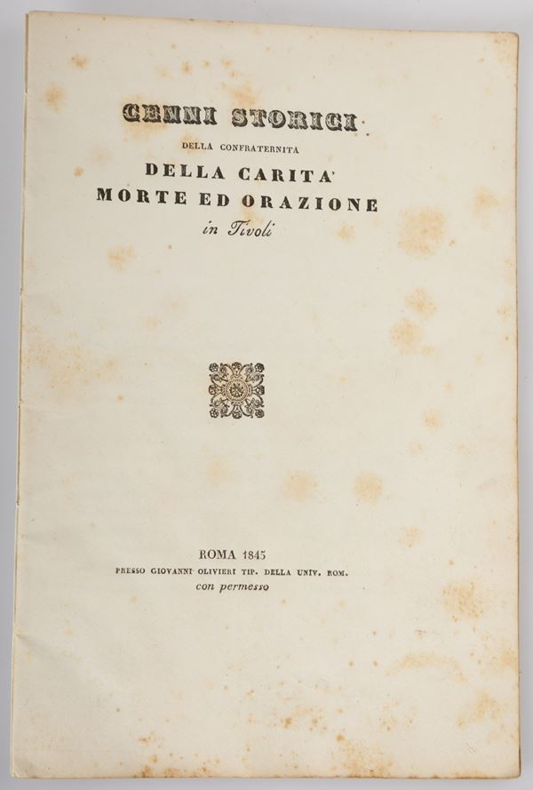 9)	Cenni storici della Confraternita della Carità, Morte ed Orazione in Tivoli - Roma, 1845.
