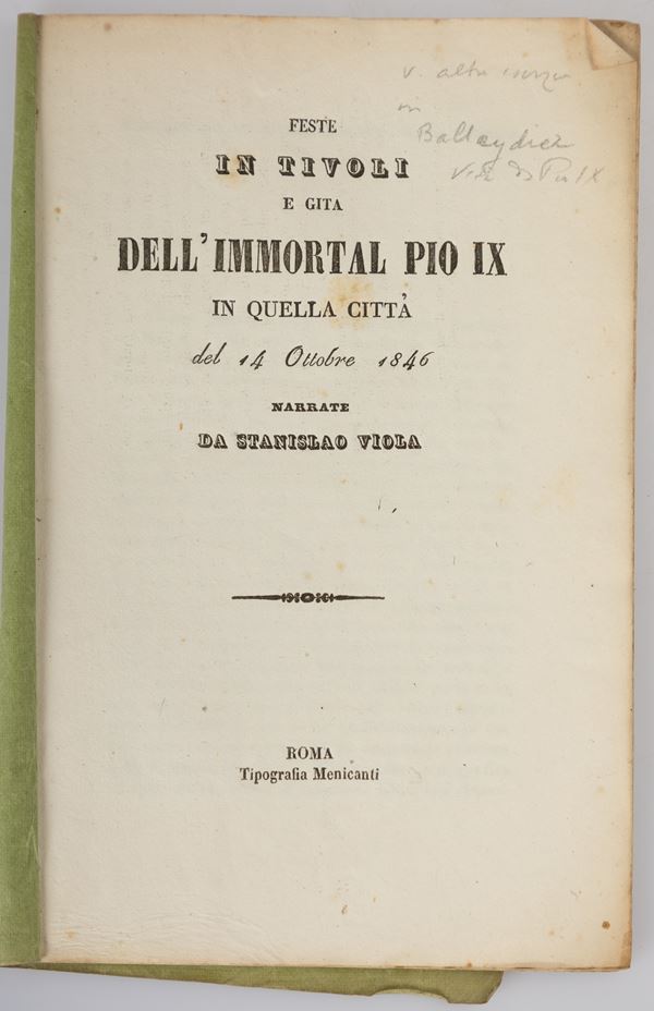 10)	Feste in Tivoli e gita dellʹimmortal Pio IX° in quella città del 14 ottobre 1846 - Roma, 1846.