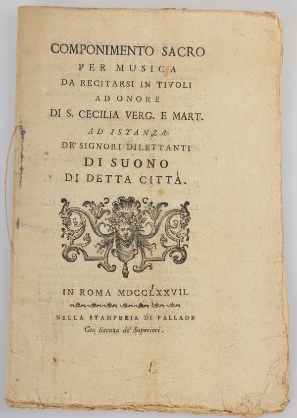 11)	Componimento sacro per musica da recitarsi in Tivoli ad onore di S. Cecilia Verg. e Mart. ad istanza deʹ signori dilettanti di suono di detta città - Roma, 1777.