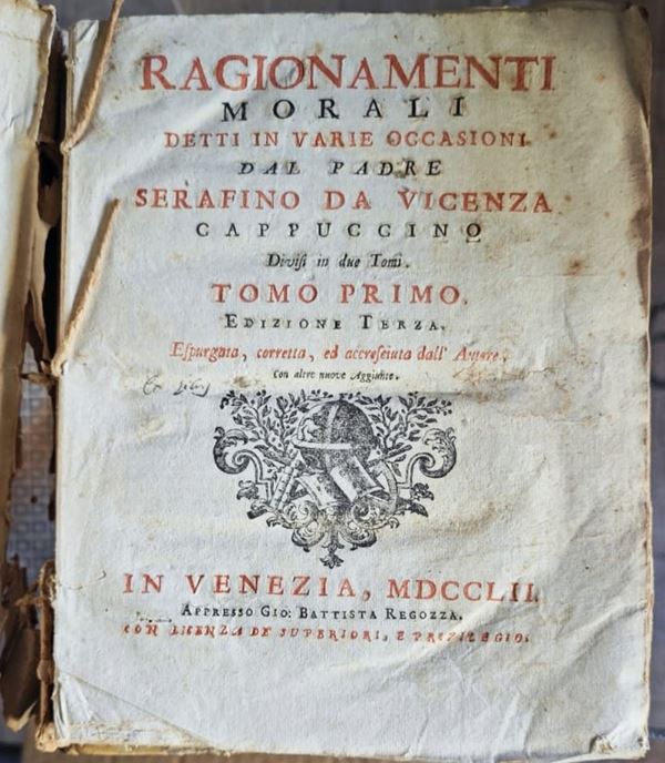 2) Ragionamenti morali dette in varie occasioni dal Padre Serafino da Vicenza - Venezia, 1752.