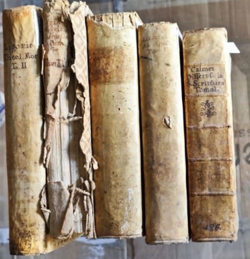 Volumi in discrete condizioni, antiche gore, bruniture, legature con tracce d'uso e mancanze.