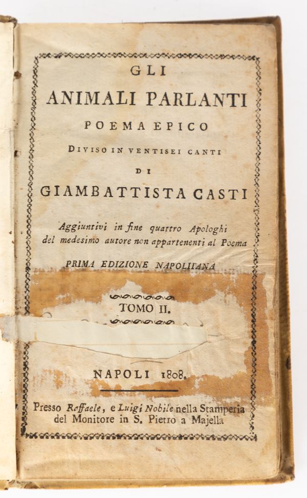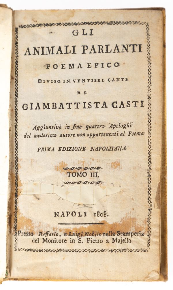4)	Gli animali parlanti : poema epico di Giambattista Casti. Tomo II°/III° - Napoli, 1808.