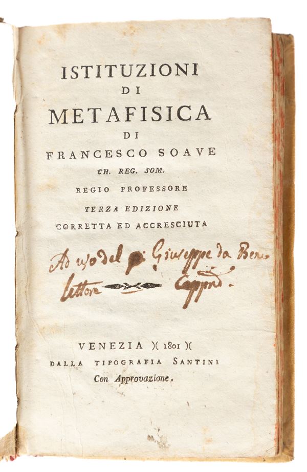 3)	Istituzioni di Metafisica di Francesco Soave - Venezia, 1801.
