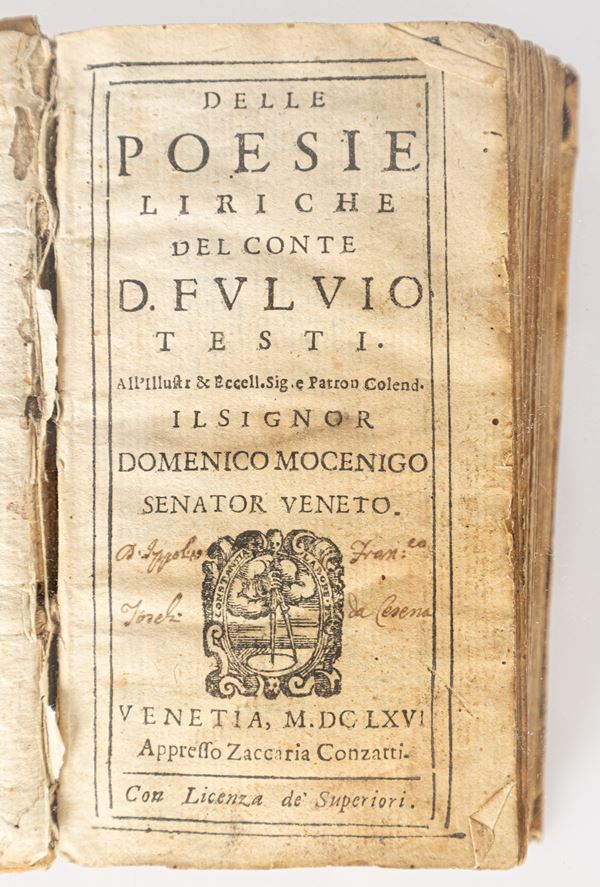 1)	Delle Poesie liriche del Conte Fulvio Testi - Venezia, 1666.