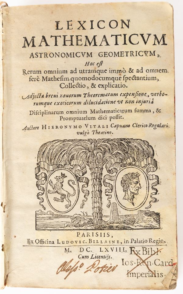 3)	Vitali - Lexicon mathematicum astronomicum geometricum... - Parigi, 1668. (legatura mancante, ex-libris Biblioteca Cardinale Imperiali)