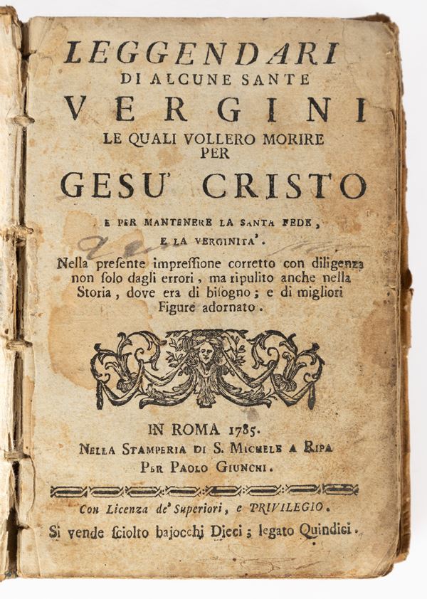 5)	Leggendari di alcune sante vergini... - Roma, 1785. (illustrato da xilografie n.t.)