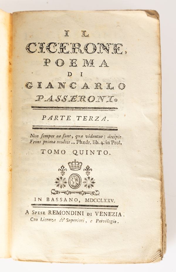 8)	Il Cicerone poema di Giancarlo Passeroni. Tomo V° - Bassano, 1775.