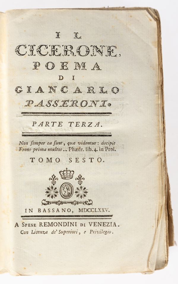 9)	Il Cicerone poema di Giancarlo Passeroni. Tomo VI° - Bassano, 1775.
