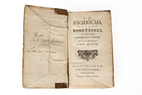 6)	Fagiuoli - La fagiuolaia ovvero rime facete del sig. dott. Giovambattista Fagiuoli, libro sesto. - Amsterdam, 1740.