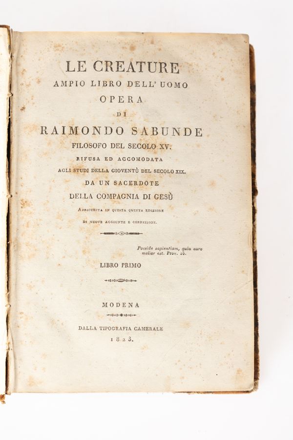 4)	Le Creature ampio libro dellʹuomo opera di Raimondo Sabunde filosofo del secolo XV° - Modena, 1823.