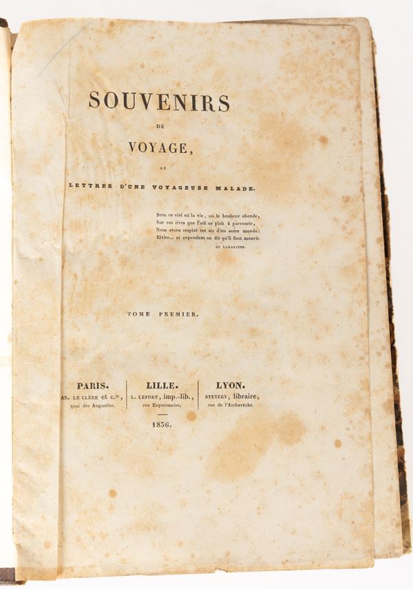 2)	Souvenirs de Voyage ou lettres dʹune voyageuse malade. Tomo I° - Parigi, 1836.