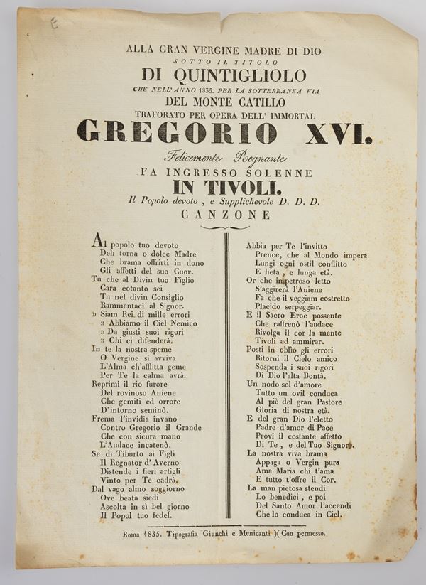3)	Alla gran vergine madre di Dio sotto il titolo di Quintigliolo, per la sotterranea via del Monte Catillo traforato.... - Roma, 1835.