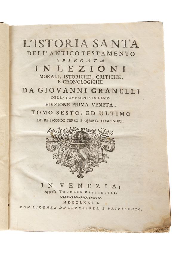 4)	Granelli - LʹIstoria Santa dellʹ Antico Testamento spiegata in lezioni, tomo sesto - Venezia, 1773.
