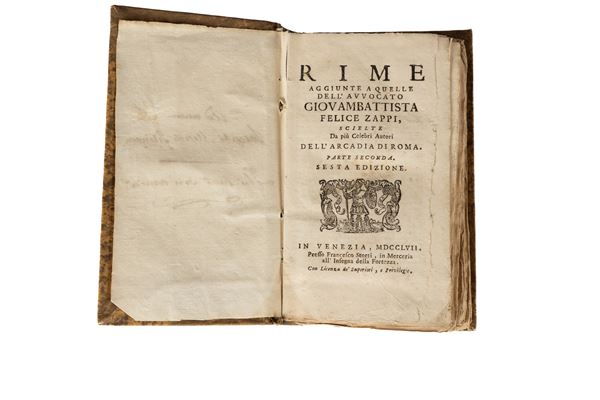 2)	Rime aggiunte a quelle dellʹAvvocato Giovambattista Zappi, scelte daʹ piuʹ celebri autori dellʹArcadia di Roma. Parte II° - Venezia, 1757.