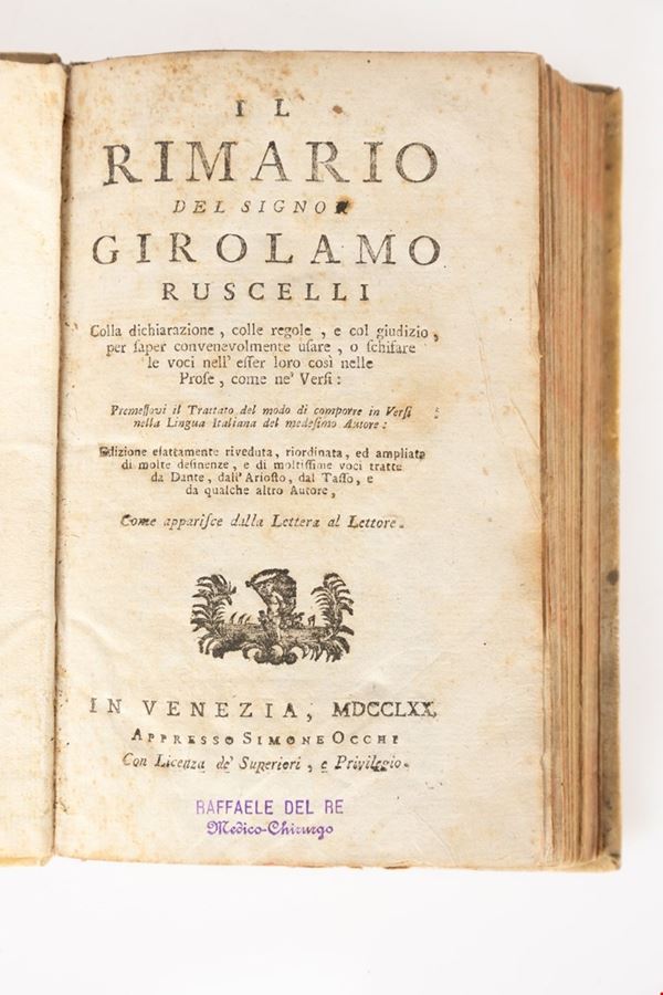 2)	Il Rimario del Signor Girolamo Ruscelli - Venezia, 1770.