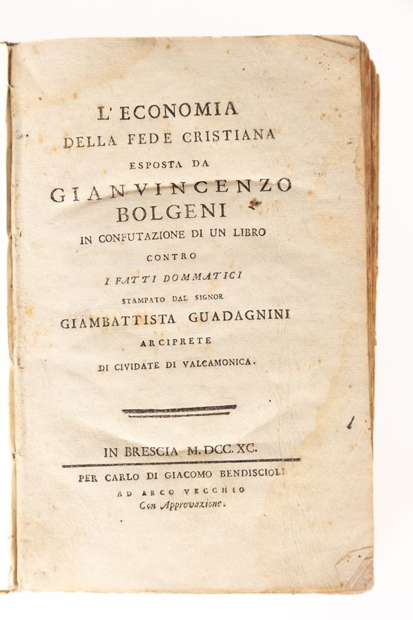1)	Lʹeconomia della fede cristiana esposta da Gianvincenzo Bolgeni - Brescia, 1790.