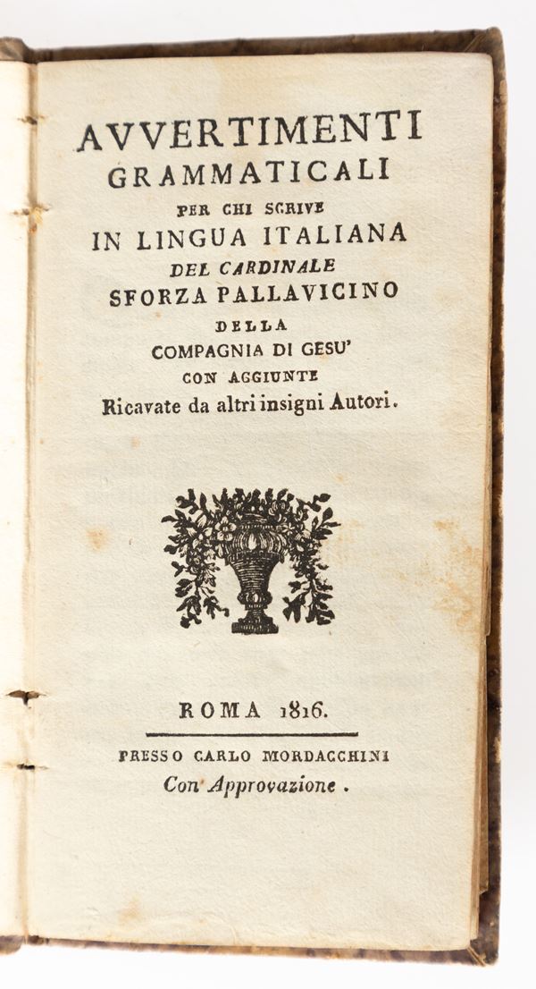 6)	Avvertimenti grammaticali per chi scrive in lingua italiana - Roma, 1816.