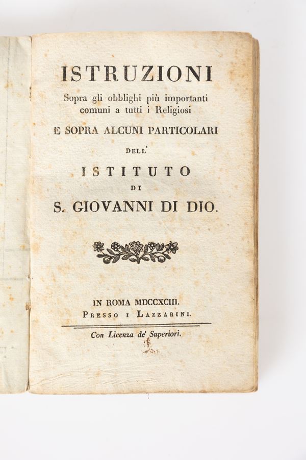 3)	Istruzioni sopra gli obblighi più importanti comuni a tutti i religiosi - Roma, 1793.