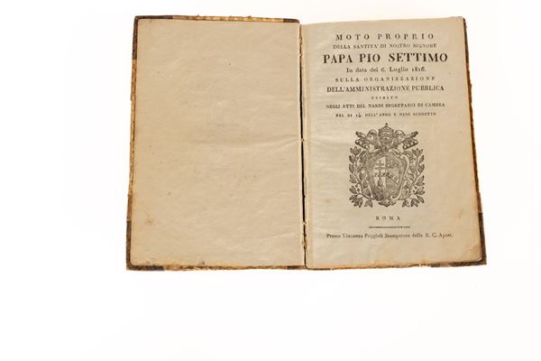 3) Moto proprio della Santità di Nostro Signore Papa Pio VII°... sulla organizzazione della amministrazione pubblica - Roma, 1816.
