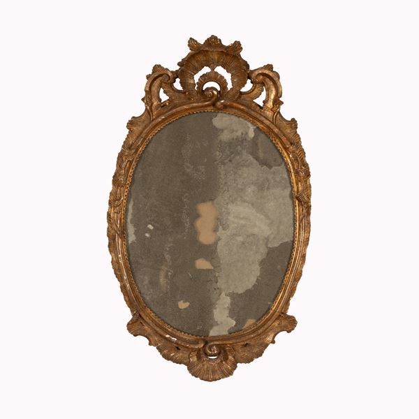 cm 89x53mistilinee con vetro al mercurio e cornice riccamente intagliata e dorata con motivi fogliati e floreali.